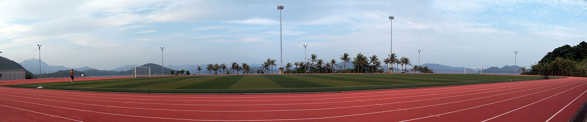 在田徑跑道中央,一般都植有地,作為擲項等田賽或作足球場之用。